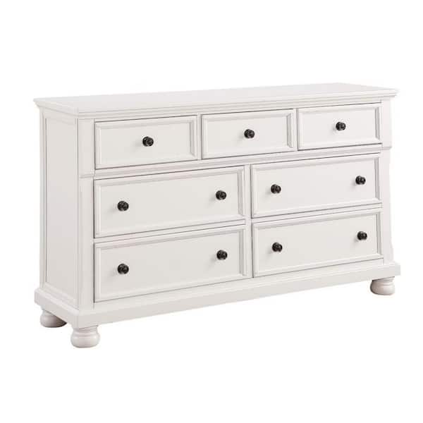 White 7-Drawer 65.25 in. Wide Dresser Without Mirror