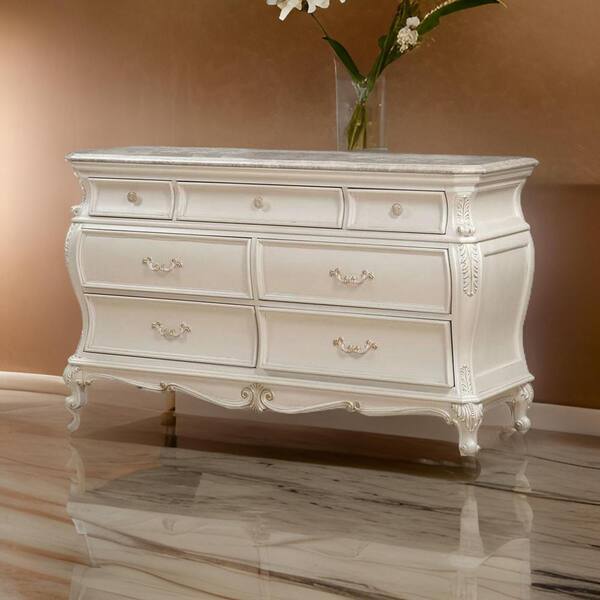 White 7 Drawer 66 in. Dresser Without Mirror
