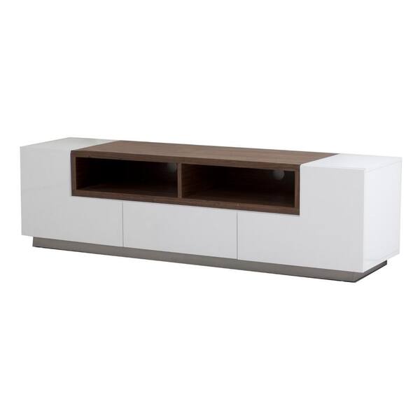 White, Brown and Silver TV Stand Fits TVs up to 66 to 71 in. with 2-Shelves