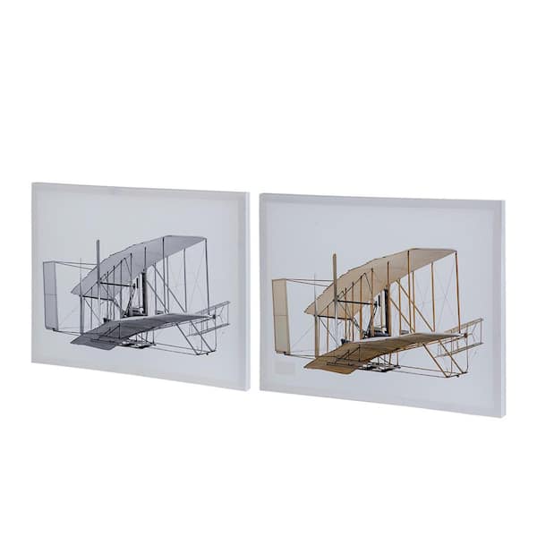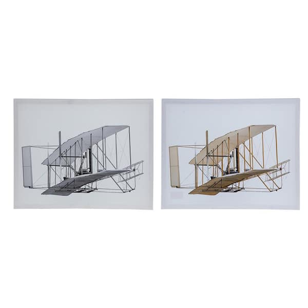 White, Gray and Brown Wooden Framed Vintage Plane Design Wall Art (Set of 2)