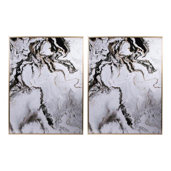 White and Black Marble Design Wooden Wall Art Panels (Set of 2)