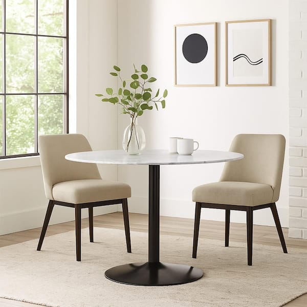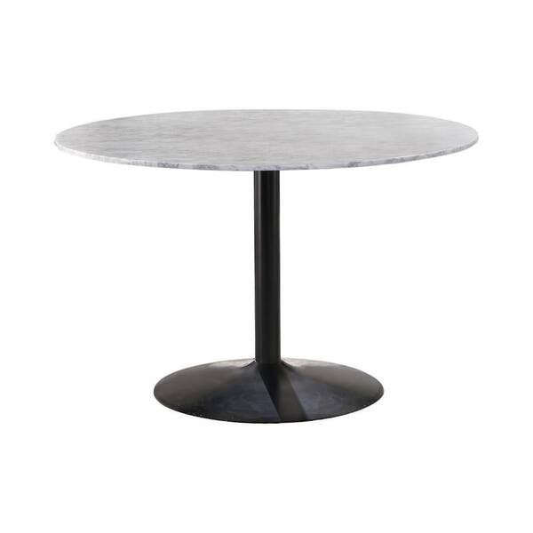 White and Black Marble Round 4.4 in. Pedestal Base Dining Table Seats 4