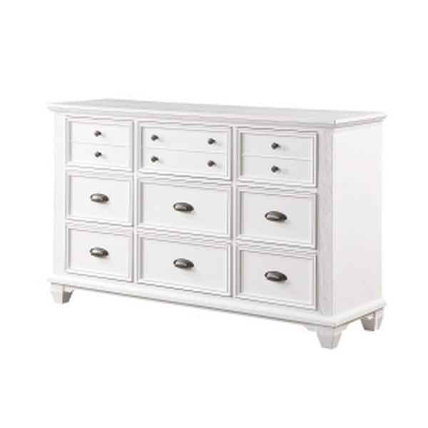 White and Bronze 9-Drawer 61 in. W Dresser Without Mirror