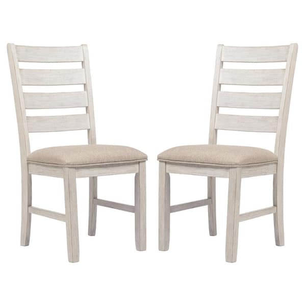 White and Brown Fabric Side Chair with Ladder Back (Set of 2)