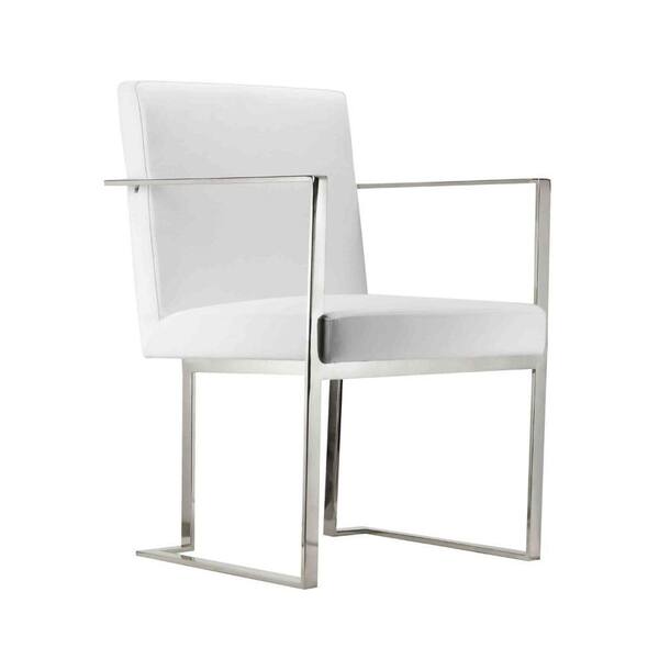 White and Chrome Faux Leather Cantilever Base Dining Armchair