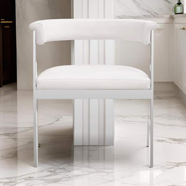 White and Chrome Faux Leather Metal Frame Dining Chair