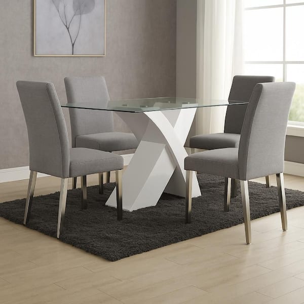 White and Clear Glass Rectangle 36 in. Cross Legs Base Dining Table Seats 4