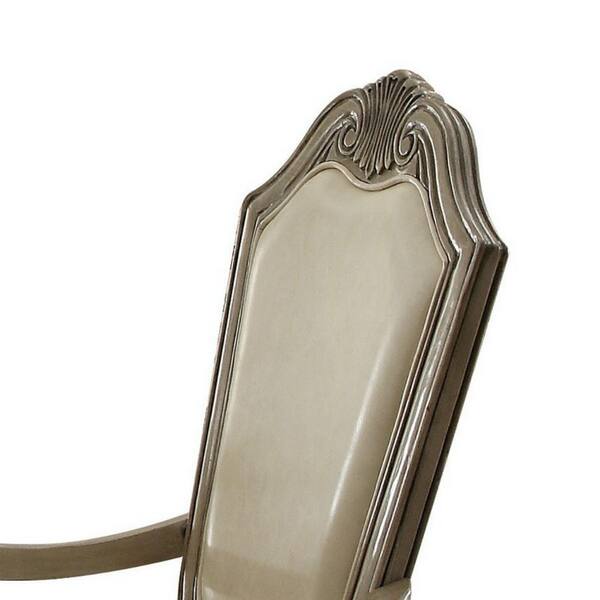 White and Gray Vegan Faux Leather Crown Top Dining Armchair (Set of 2)