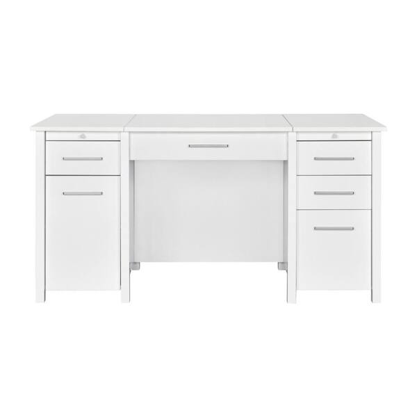 Wim 60 in. Rectangular Glossy White Wood 4-Drawer Office Desk with Adjustable Inner Shelf and 2-Pull Out Trays