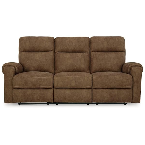 Woli 86 in. Straight Arm Faux Leather Rectangle Sofa in Brown