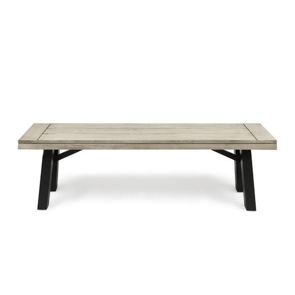 Wren Gray and Black Wood Outdoor Ottoman Bench with Slat Panel (Set of 2)