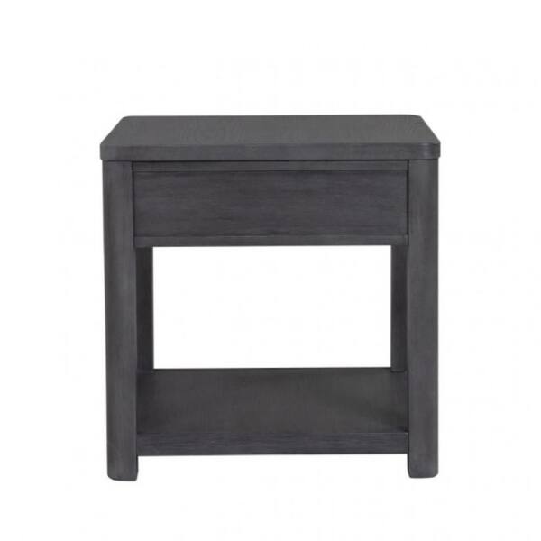 Zoko 24 in. Ash Gray Square Rubberwood End Table with 1-Drawer and 1-Shelf