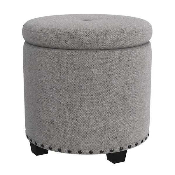 Zoya Gray and Black Fabric Round Storage Ottoman
