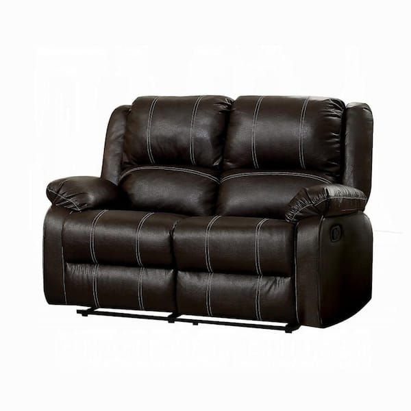Zuru Brown Faux Leather Glider Recliner Manual Loveseat with Pillow Top