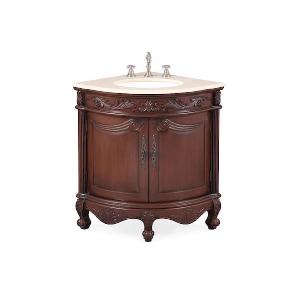 Bayview 24 in. W x 24 in D. x 34 in. H Cream marble Vanity Top in Brown with Bisque under mounted porcelain basin Vanity