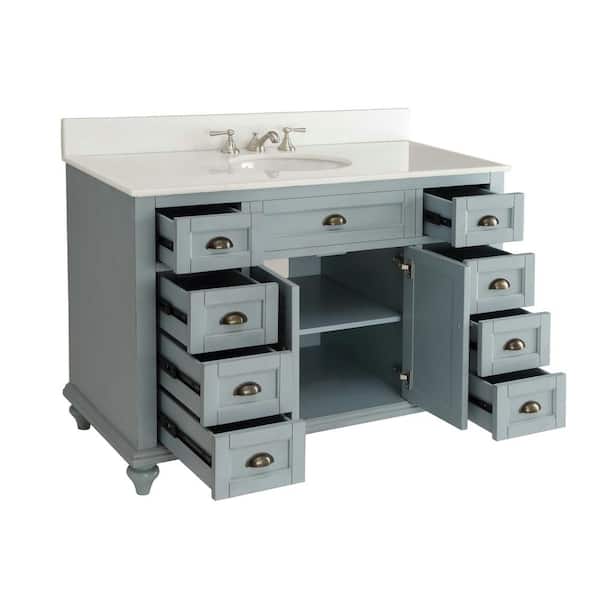 Glennville 49 in. W x 22 in. D x 35 in. H Bathroom Vanity in Vintage Blue with White Quartz Top