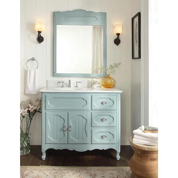Knoxville 42 in. W x 21 in. D x 35 in. H Bathroom Sink Vanity in Blue with White Marble Top