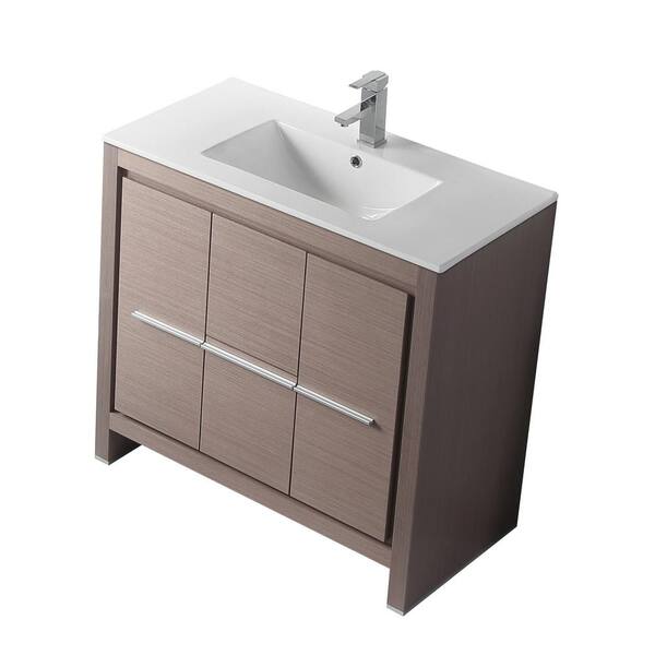 Viara 36 in. W x 18.11 in. D x 33.46 in. H. Bathroom Vanity in Gray Oak with White Ceramic Top