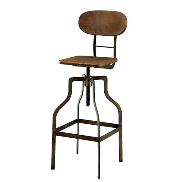 Industrial Style Brown Wooden Swivel Bar Stool with Gray Metal Base