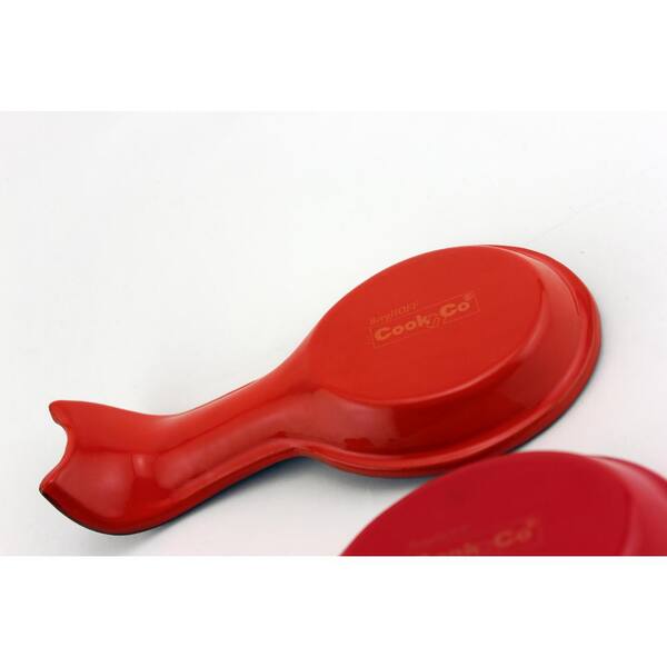 3.8 in. H x 8 in. W x 1.2 in. D Orange Cast Iron Spoon Rest