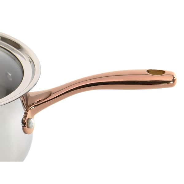 Ouro Gold 2.4 qt. 18/10 Stainless Steel Saucepan 6.25 in. with Glass Lid, Rose gold