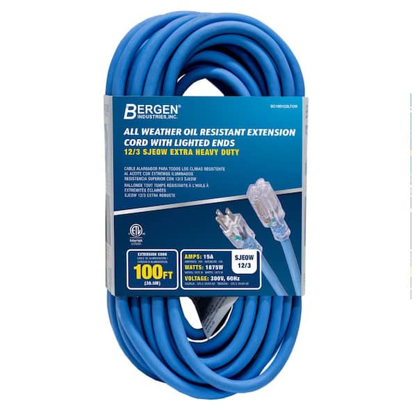 100 ft. 12/3 SJEOW 15 Amp/300-Volt All Weather Heavy-Duty Farm and Shop Extension Cord with Lighted End