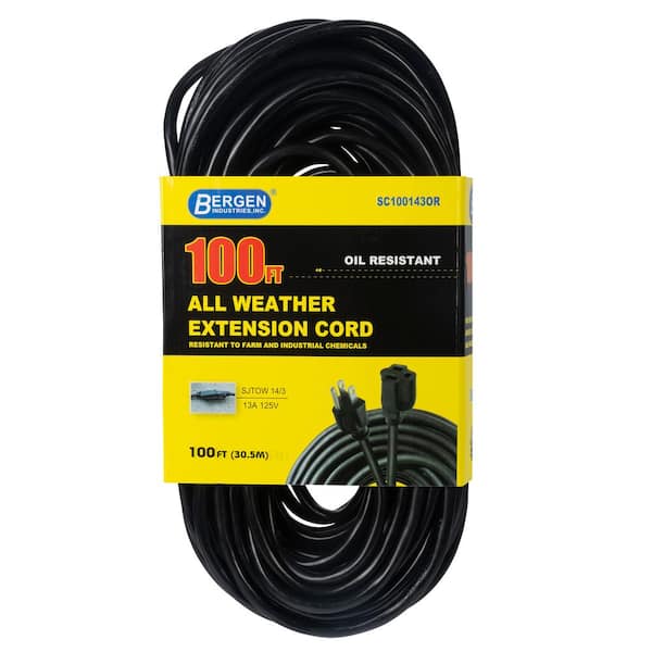 100 ft. 14/3 SJTOW 15 Amp/125-Volt All Weather Farm and Shop Extension Cord, Black
