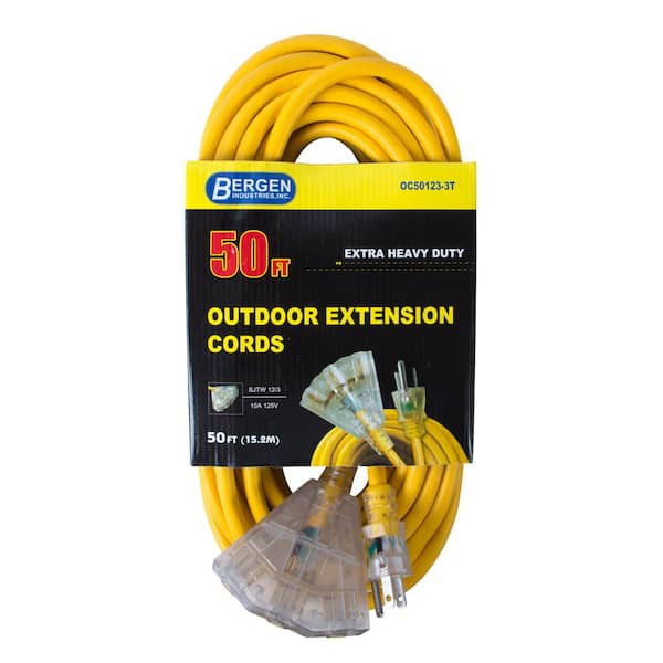 50 ft. 12/3 SJTW 15 Amp/125-Volt Outdoor Triple Tap Extension Cord, Yellow