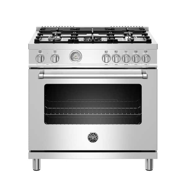 Master Series 36" 5.7 cu. ft. Dual Fuel Range with Dual Convection Oven, 6 Brass Burners, Soft-Close in Stainless Steel