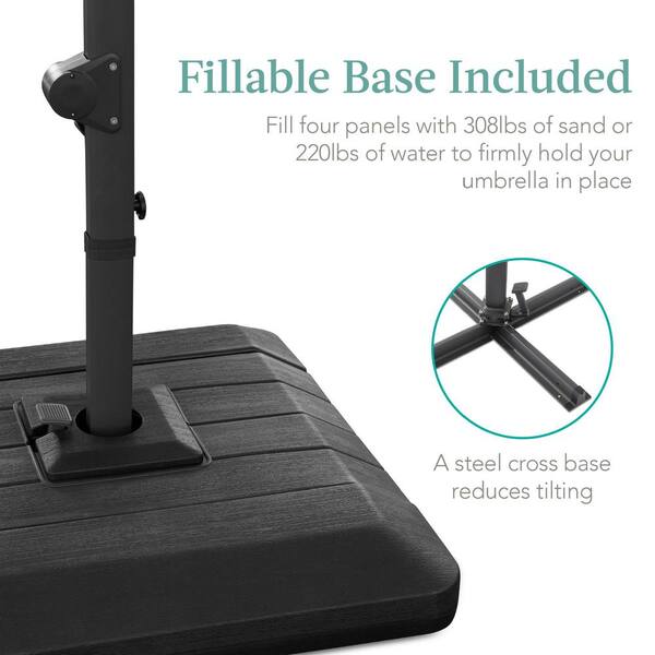 10 ft. Solar LED 2-Tier Square Cantilever Patio Umbrella with Base Included in Slate