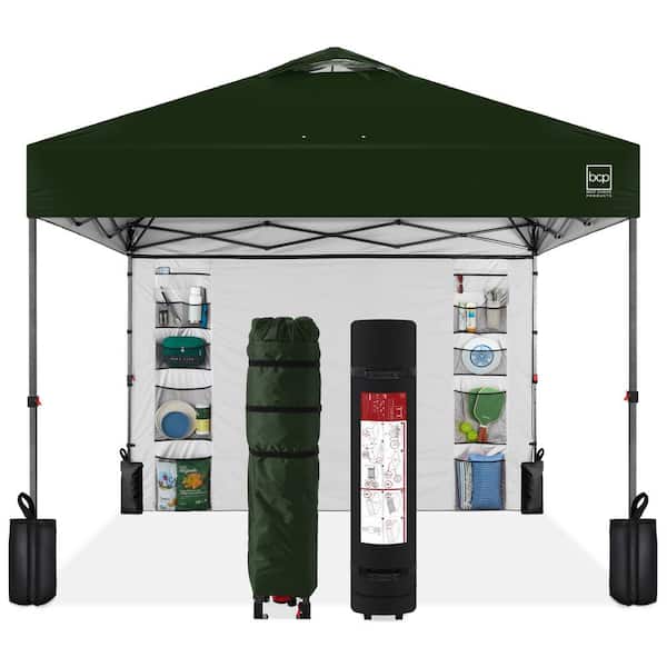 10 ft. x 10 ft. Dark Green Easy Setup Pop Up Canopy Portable Tent with 1-Button Push, Side Wall, Case
