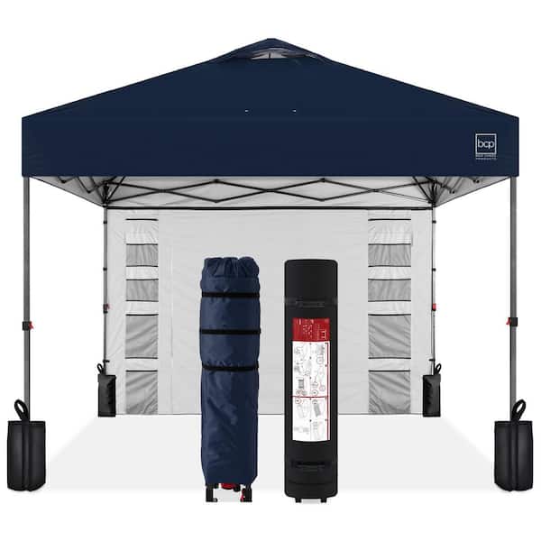 10 ft. x 10 ft. Navy Blue Easy Setup Pop Up Canopy Portable Tent with 1-Button Push, Side Wall, Case