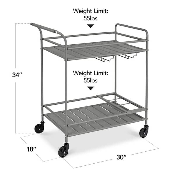 2-Tier Gray Outdoor/Indoor Metal Bar Serving Cart with Storage Shelves and Lockable Wheels