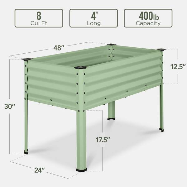 48 in. x 24 in. x 30 in. Sage Green Rectangle Galvanized Steel Raised Garden Bed Planter Box
