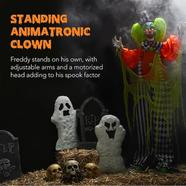 Funhouse Freddy 5.5 ft. Motion activated Animatronic Standing Killer Clown Outdoor Halloween Decoration