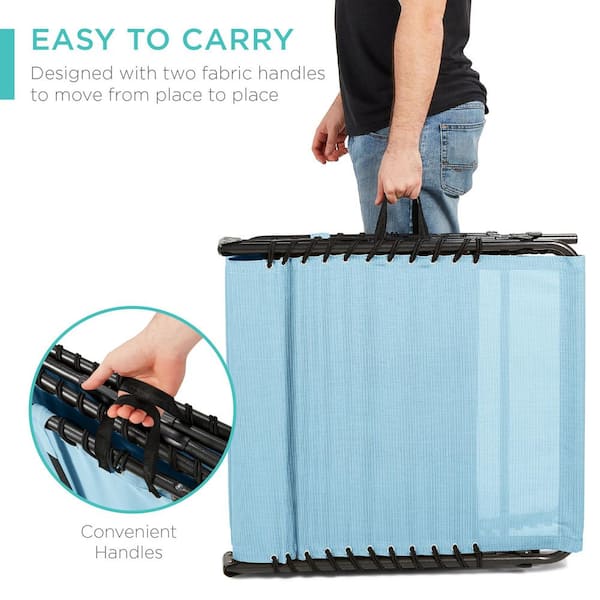 Metal Outdoor Chaise Lounge Chair, Portable Adjustable Folding Patio Recliner with Pillow in Slate Blue