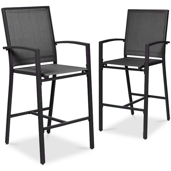 Outdoor Bar Stool Set of 2 Bar Height Patio Chairs with All-Weather Mesh-Black/Black