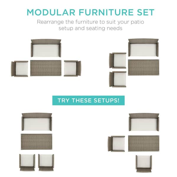Taupe 4-Pieces Wicker Patio Conversation Set with White Sand Cushions, 4 Seats, Tempered Glass Table Top