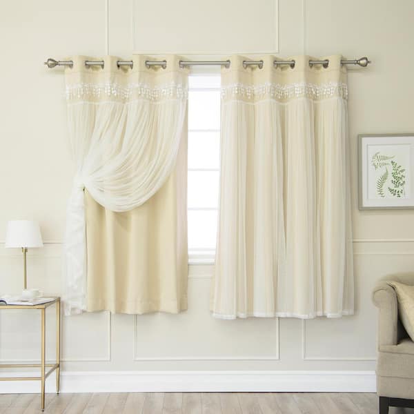 Beige Fringed Border Solid Grommet Room Darkening Curtain - 52 in. W x 63 in. L (Set of 2)