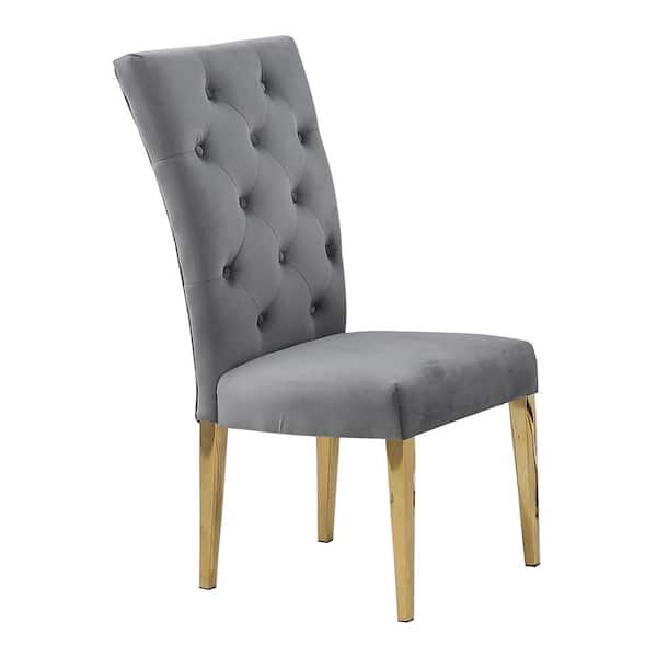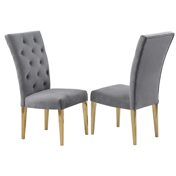 Lexington Gray/Gold Tufted Velvet Parsons Chairs (Set of 2)