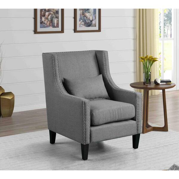 Lucas 29 in. Dark Gray Linen Arm Chair with Nailhead Trim