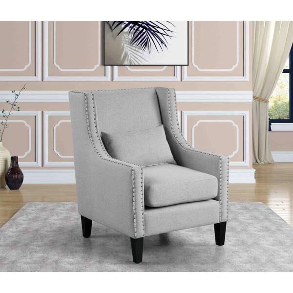 Lucas 29 in. Light Gray Linen Arm Chair with Nailhead Trim