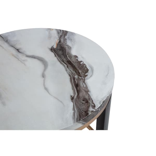 Neroa 37.5 in. L Icelandic Ivory Round Faux Marble Coffee Table with Ottoman (2-Piece)
