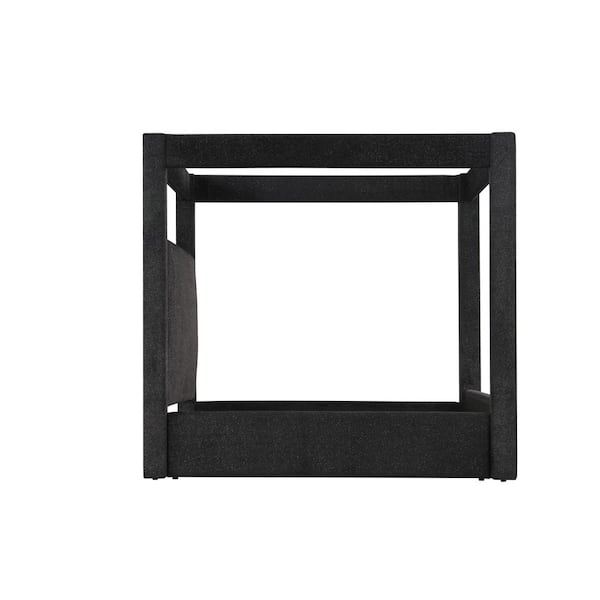 Noirla Black Wood Frame California King Platform Bed with Canopy