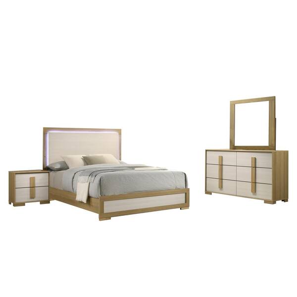 Alissa 4-Piece Natural-White Color Wood Frame Eastern King Panel Bedroom Set