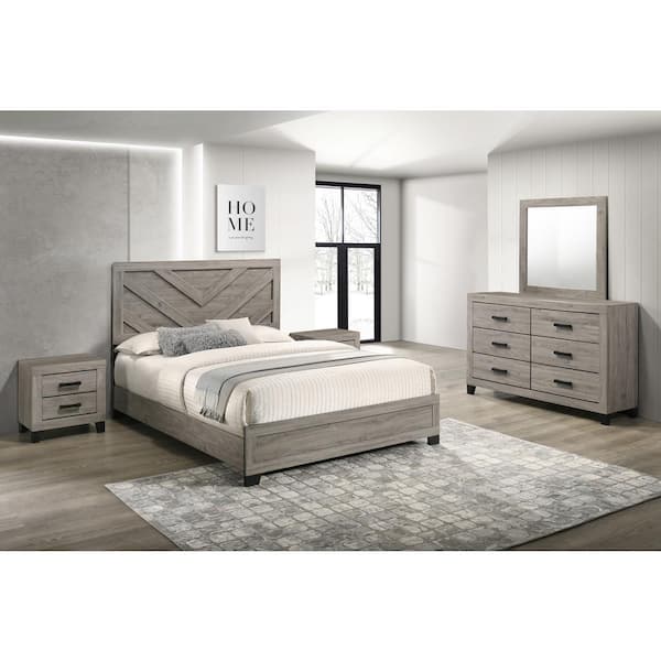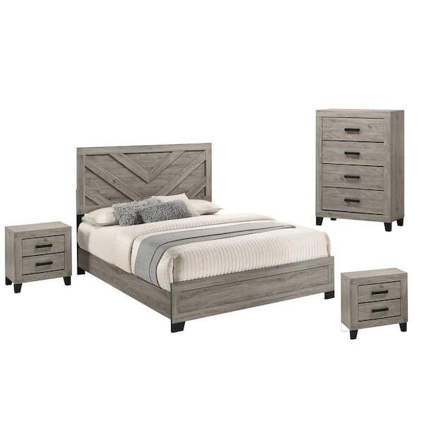 Ararat 5-Piece Light Grey Color Wood Frame Full Size Panel Bedroom Set with Nightstand