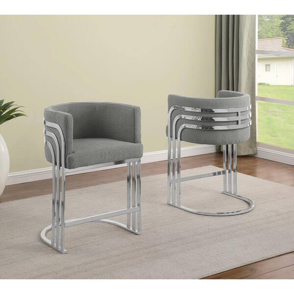 Auron 24 in. Dark Grey Low Back Metal Frame Counter Stool With Teddy Fabric Set of 2