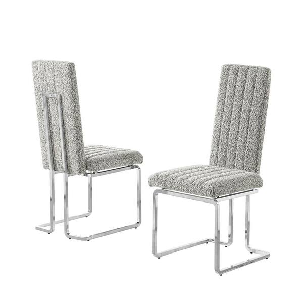 Chuck Rich Grey Boucle Fabric Side Chair Set of 2 with Chrome Plated Base
