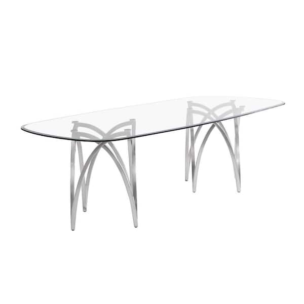 Doug Clear Glass Top 46 in W. Double Pedestal Base Dining Table Seating Capacity of 8
