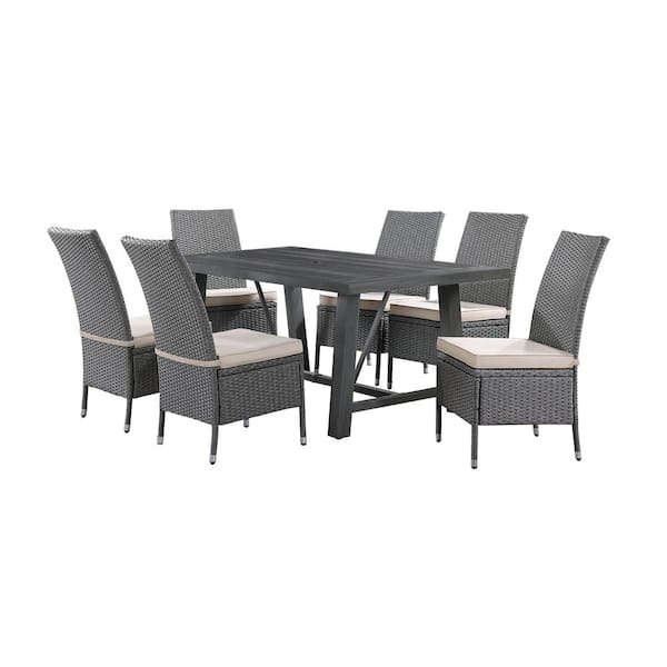 Ernesto Grey 7-Piece Poly Wood Rectangle Standard Height Outdoor Dining Set with 6 Grey Cushion Wicker Chairs